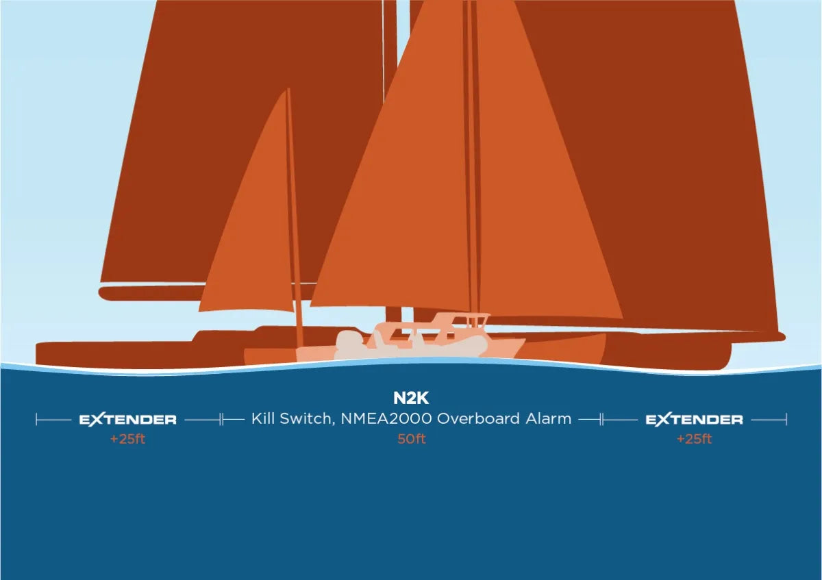 The OLAS N2K operates on a large scale, capable of tracking up to 25 OLAS transmitters around vessels up to 100ft in length. Whether you have a large motor vessel or a sailing vessel, this device has got you covered. Alternatively, it can be used to track a single tag on a motorboat, ensuring that the engine stops immediately if the helm falls overboard.
